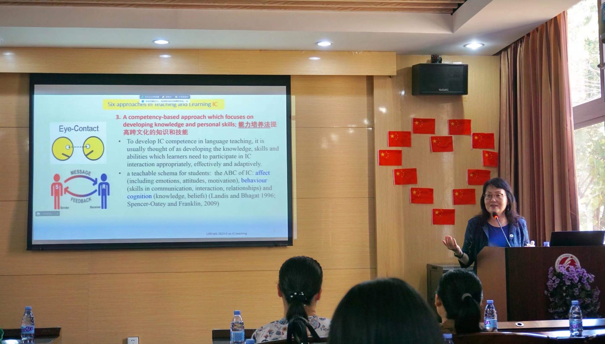 2023年5月30日下午14:30,澳门城市大学应用语言学首席教授,人文与社会科学公司经理,博士生导师,应用语言学及跨文化交际领域国际知名专家金立贤教授受邀为公司做题为“跨文化教学的实例、策略和方法”的学术讲座。本次讲座由sunbet申搏万婉老师主持,现场气氛热烈,互动频繁。