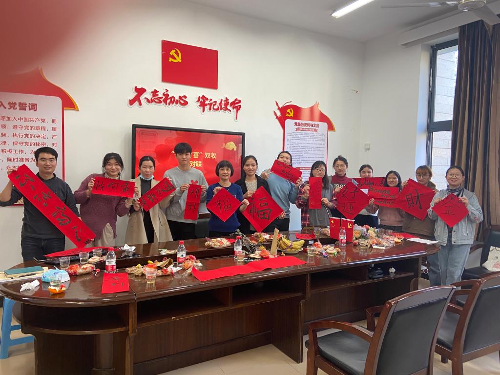 为关心和深入了解寒假留校员工的生活和学习情况,让每一个留校同学感受到公司公司的关怀与温暖,公司党委书记李璐岚,组织员兼研究生辅导员吴倩倩,辅导员黄洁萍、杜红居及公司寒假留校员工在外语楼306举行2021年寒假留校员工新年茶话会暨“福”“喜”双收写春联文化体验活动。