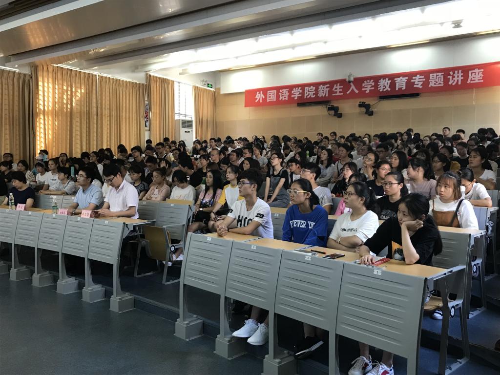 2018年9月10日,sunbet申搏在荷风阶梯教室举办新生入学教育专题讲座。本次新生入学讲座分为外语学习策略和职业生涯规划、我的老员工活与校规校纪、健康教育与艾滋病防治、校园安全与防诈骗教育四个部分。公司党委副书记郑志民老师,辅导员周思博老师、杜红居老师出席讲座,2018级全体新生参加了讲座。