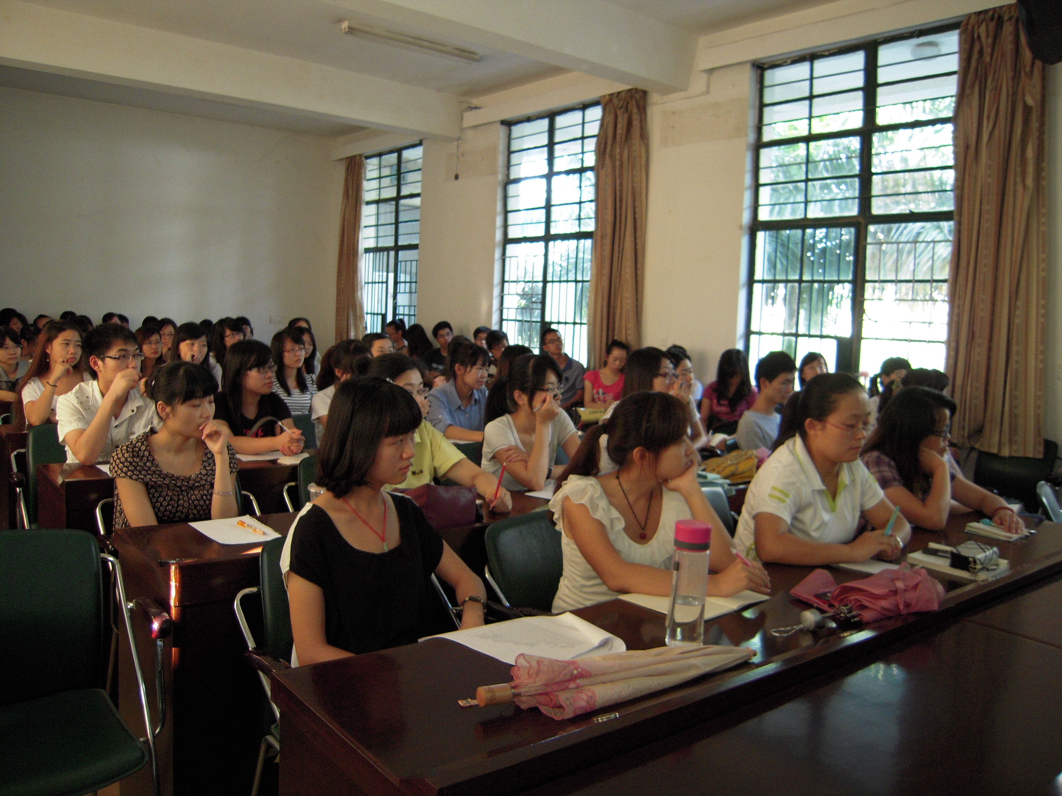 英语专业四级考试(TEM-4)和八级考试(TEM-8)的备考指南讲座,由许春翎和曾珠璇两位老师担任主讲,国际日语一级考试由黄庆法和郭木兰两位博士联袂主讲。四位老师都分析了相应考试的特点和难点,还结合真题实际讲解了解题技巧,现场的所有同学都很认真听讲,并积极与老师互动。 通过这一系列的讲座,同学们在接下来的复习过程中将不再茫然不知所措,同时也增强了同学们通过考试的自信心。