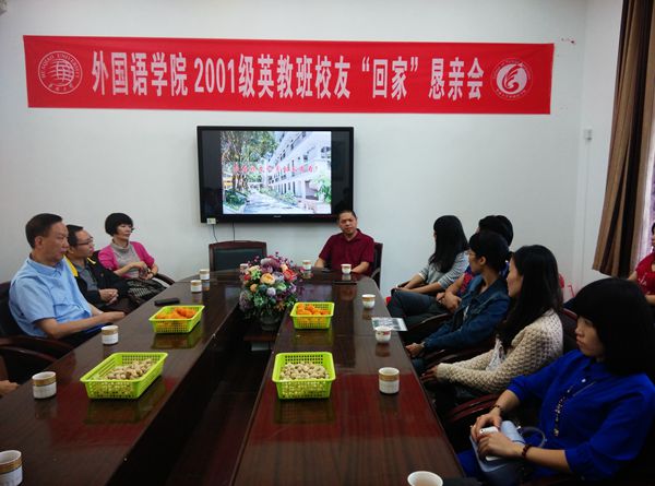 2015年11月15日上午,2001级英语教育本科班部分员工返回母校,在外语楼306会议室举行毕业十周年恳亲会。公司党委书记谢友福,副经理潘锡清,陈道明教授,班主任叶艾莘、蔡和存等出席了座谈会。 座谈会在潘锡清副经理轻松、幽默的主持下进行。公司党委书记谢友福代表公司对员工们的到来表示热烈的欢迎,同时向员工们汇报了公司近年来的发展情况以及员工会的工作动态,对员工们毕业后爱拼敢赢、奉献社会、积极主动关心支持公司建设和发展的出色表现给予高度赞许,同时真诚希望员工们进一步加强与公司的密切联系,常回家看看。接着,与会的班主任老师和员工们一起重温往日共处的点点滴滴美好回忆,员工们也逐一汇报了毕业后的个人职业生涯和家庭情况,表达了对公司和公司的无限眷恋之情。座谈会气氛活跃,充满欢声笑语和浓浓亲情。会后,员工们参观了外语楼和校园,对公司和公司日新月异的发展变化发出由衷的赞叹。 据悉,为进一步培养泉州市中学英语团队,泉州市人民政府曾于1992年至1996年委托华大开办英语团队委培专科班(两年制),由大学英语部承办。1997年开始改设英语教育专业本科班,共开办五届;其中,97级由当时独立建制的大学英语部承办,往后四届均落户于新成立的sunbet申搏。此次返校省亲的2001级英语教育专业本科班是最后一届,因此具有特殊的纪念意义。