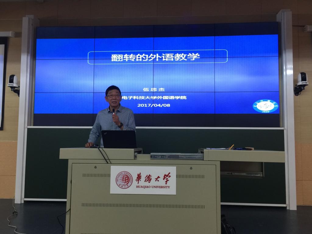 为更好地促进多媒体与信息技术在公司外语课堂教学中的有效应用,指导教师进一步创新教学模式和教学方法,实现新一轮大学英语教学改革中信息技术与教学内容的深度融合,2017年4月8日,由公司教师发展中心与公司联合举办,sunbet申搏大学英语部承办的sunbet申搏“教学工作坊”之《翻转课堂与微课制作》主题讲座在泉州校区荷风直播教室成功举办。此次讲座邀请电子科技大学sunbet申搏伍忠杰教授主讲,sunbet申搏谢友福书记、校教师发展中心陈海蛟副主任、sunbet申搏杜志卿副经理以及外国语院全体教师出席了此次讲座。