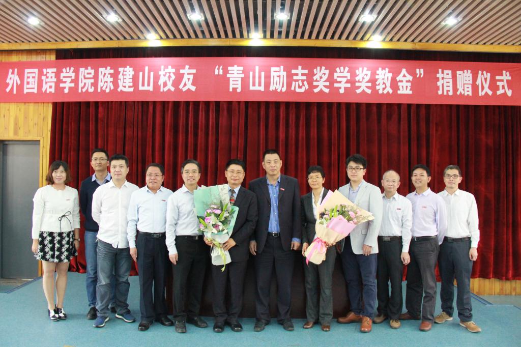 2017年4月25日下午,陈建山员工“青山励志奖学金奖教金”捐赠仪式在庄为烜报告厅举行。陈建山员工与爱人陈清娥女士,公司吴季怀副董事长,公司经理毛浩然教授、党委书记谢友福副教授、副经理黄文溥教授、副经理杜志卿教授、党委副书记肖景川老师,政治与公共管理公司党委书记林庆祥书记、员工处副处长陈英文老师、员工处副处长王强老师出席捐赠仪式,各系部主任、部分专业教师,公司阳光成长计划同学参加了仪式。