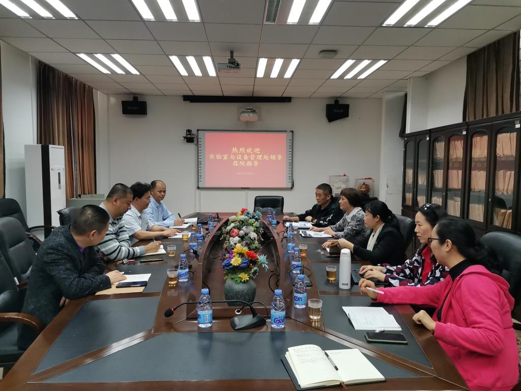 2021年11月19日下午三点,实验室和设备管理处黄富贵处长率队一行四人前往sunbet申搏调研,朱琳副经理主持会议,欢迎黄富贵处长、林晖平副处长和相关科室重要负责人的到来。李璐岚书记、翻译系许春翎老师、大学英语部刘碧秋老师和实验室王朝东老师、王燕梅老师参加了会议。