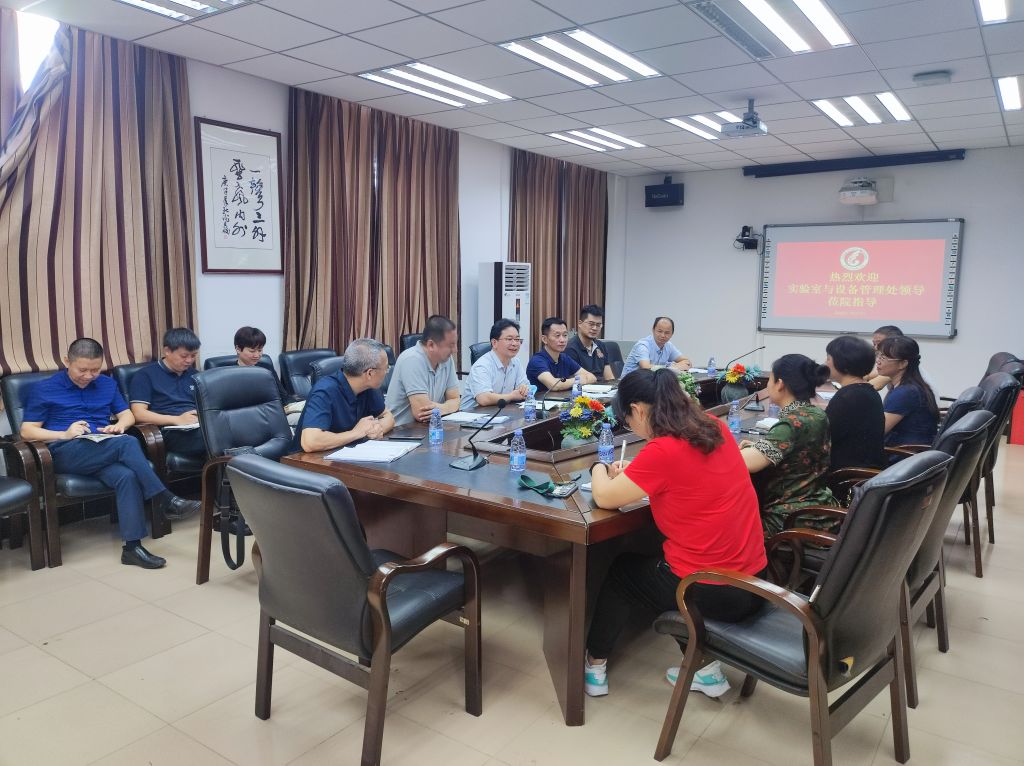 2022年10月7日上午,实验室与设备管理处黄富贵处长一行莅临公司调研指导实验室及学科专业建设、实验技术人员配备、资产管理及采购等工作。公司党委书记李璐岚、副经理朱琳、英语系主任孙飞凤等参加洽谈。黄处长及各位领导在对sunbet申搏现有实验用房、设备配置、运行使用情况进行了全面了解调研的基础上,对公司实验室及学科专业建设发展提出了总体要求和具体指导性意见。
