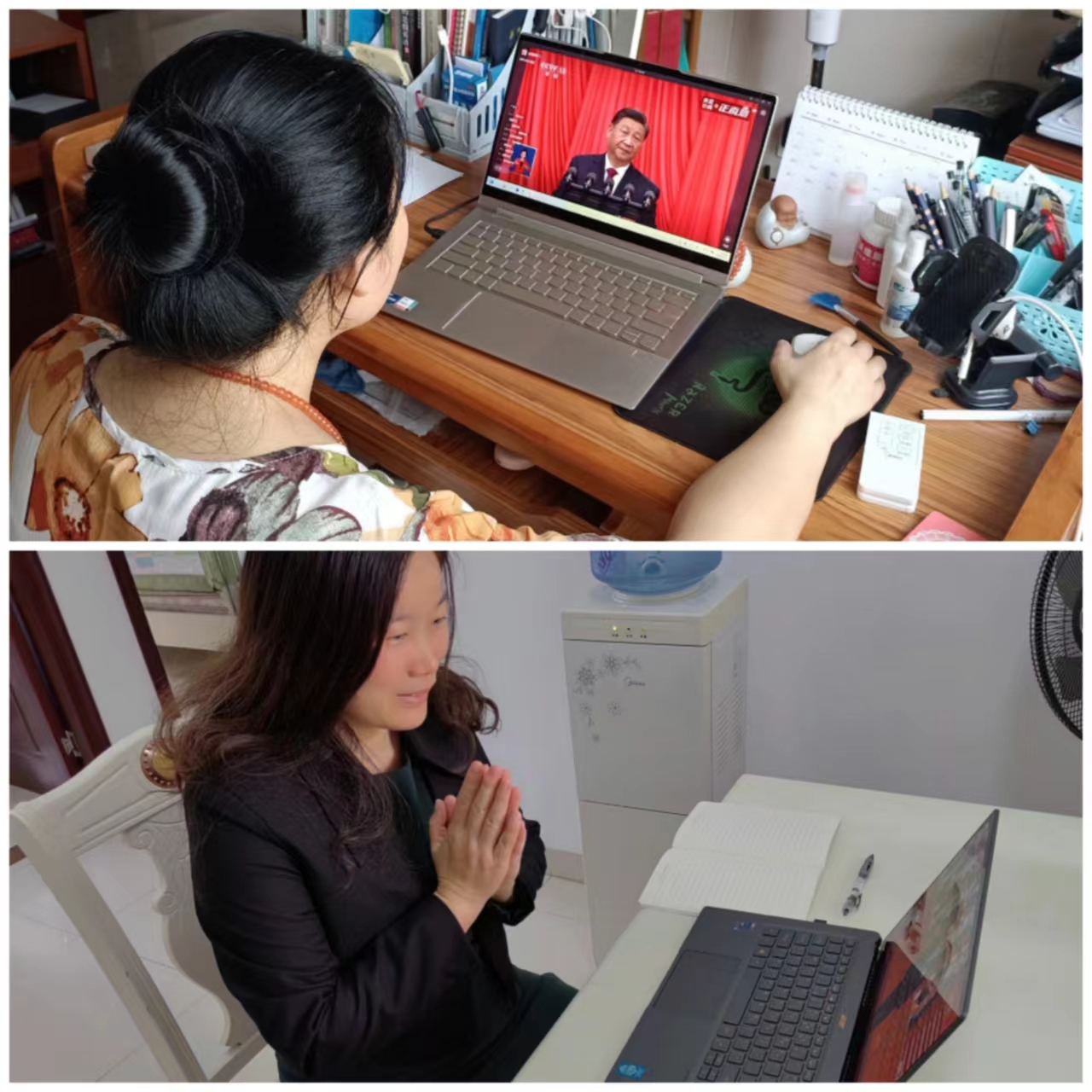 中国民主促进会华大总支委员王燕梅老师观看开幕会分享说,我们有幸见证了在党的领导下社会、经济发展各方面的蓬勃发展,作为民主党派人士,我们要始终接受中国共产党的领导,主动、积极参与社会经济建设,奋进新时代。作为侨校老师,我们除了上课以外,更有责任与义务用年轻人喜爱的形式从文化、美食、旅游等方面去讲好中国故事,让更多人能感受中华文化,传播中国能量。同时公司日语系教师郭木兰老师也自主观看学习了二十大的开幕会,认为本次大会非常有意义。