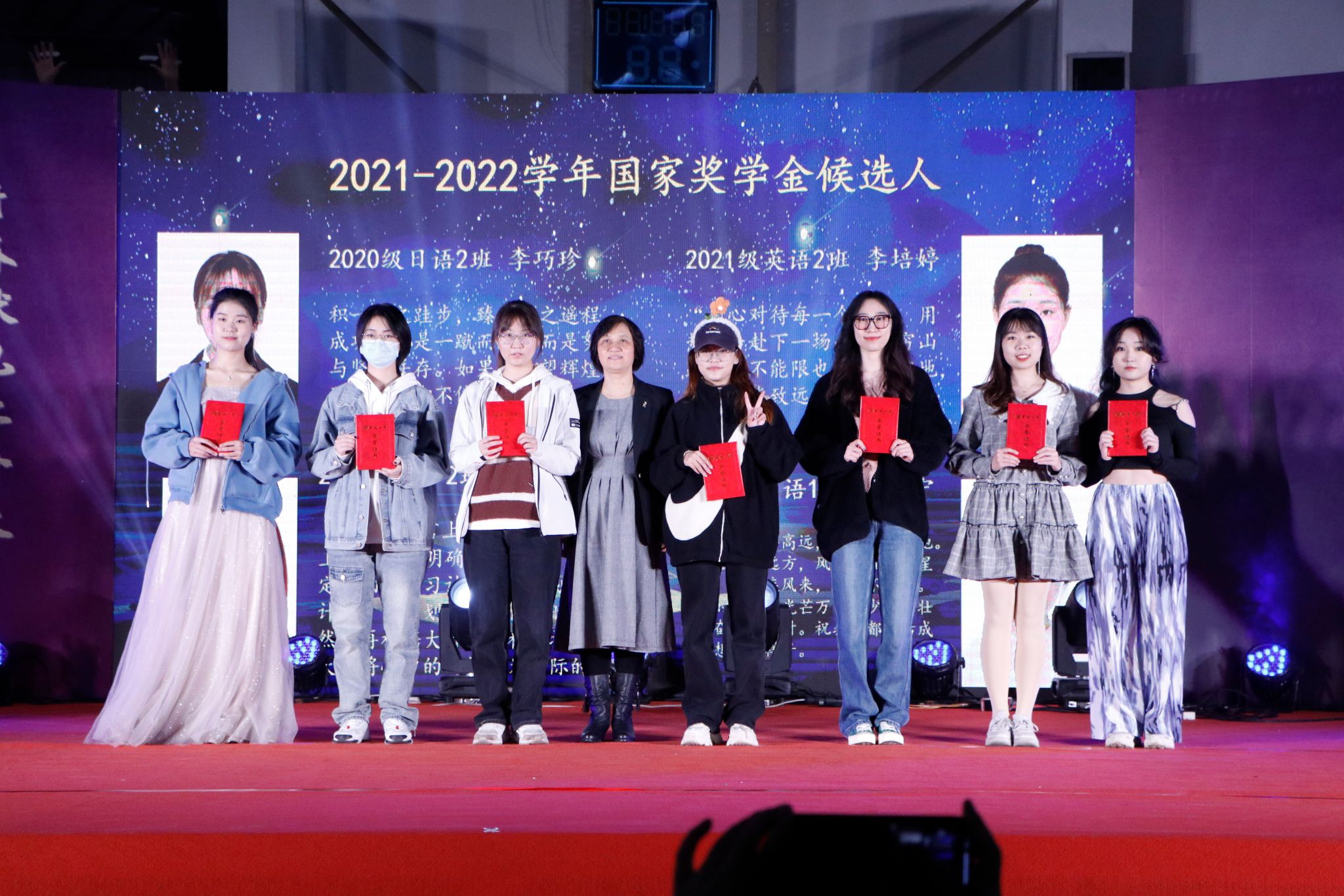 使命呼唤担当,榜样引领时代。在节目表演环节中间进行的是公司的年度表彰大会,公司对在过去一学年中学习成绩优异、学科竞赛中表现突出的团队和个人进行表彰。依次分别对国家奖学金、国家励志奖学金、青山励志奖学金、校级一二等奖学金等获奖代表进行表彰,对在外语类学科竞赛中获奖选手进行嘉奖。