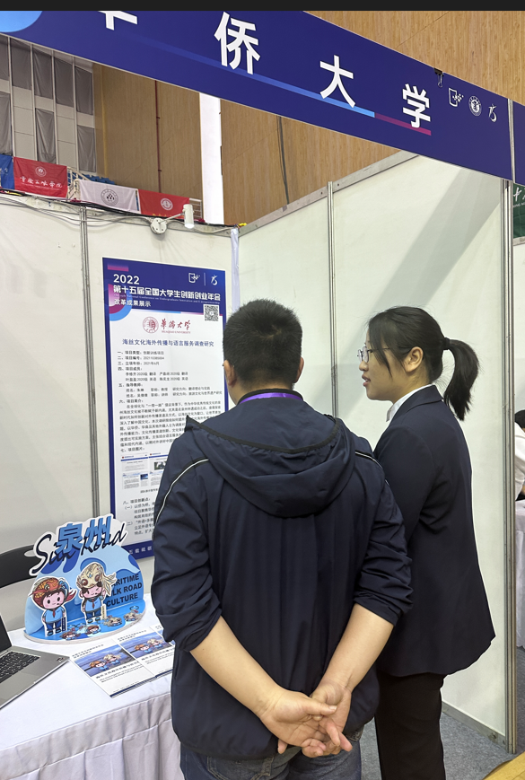 2023年5月12-14日,第十五届全国老员工创新创业年会(简称“国创年会”)在江苏省徐州市中国矿业大学南湖校区举办。本次年会sunbet申搏共有4项学术成果入选参会,公司创新改革成果项目“海丝文化海外传播与语言服务调查研究”(项目团队成员:李修齐、叶盈盈、严嘉翊、陈奕龙;指导教师:sunbet申搏副经理朱琳教授、党委组织员吴倩倩老师)入选“国创计划”十五周年创新成果展和第十五届全国老员工创新创业年会改革项目成果展示。