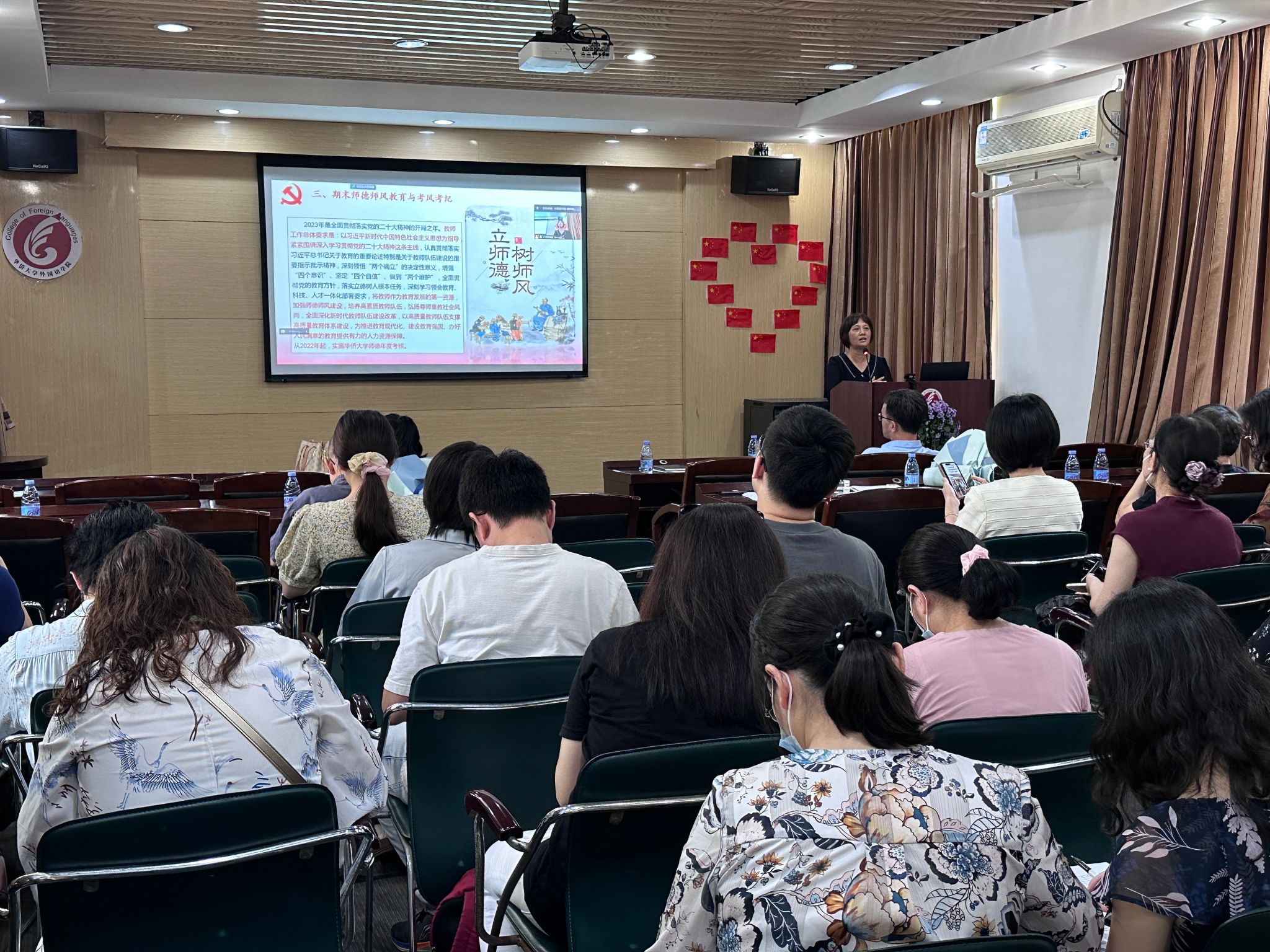 紧接着,李璐岚书记以“加强师德师风建设,培养高素质教师队伍”为主题,向全体教职员工传达了公司师德师风建设有关文件精神,鼓励大家向优秀致敬,向先进学习,学习从教三十周年几位教师的优秀品质,端正师德师风,养成终身学习习惯;不断提升专业素养,积极投身各项工作,为促进公司高质量发展做出贡献。