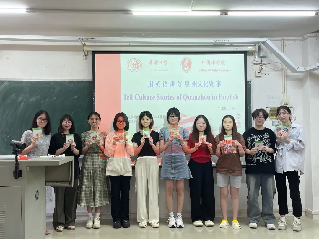 以外语之声,鉴泉州文化,2023年7月7日,主题教学实践周之“用英语翻译好泉州文化故事”在敬梯二举行,本次活动是黄娟娟老师《旅游翻译》课的员工实践项目教学成果汇总展示。员工共完成三十二个泉州文化实践项目,通过查找中文资料、翻译、视频拍摄及剪辑,提升翻译能力,增强文化传播意识,加强英语学习者在文化传播上的使命感和责任感。