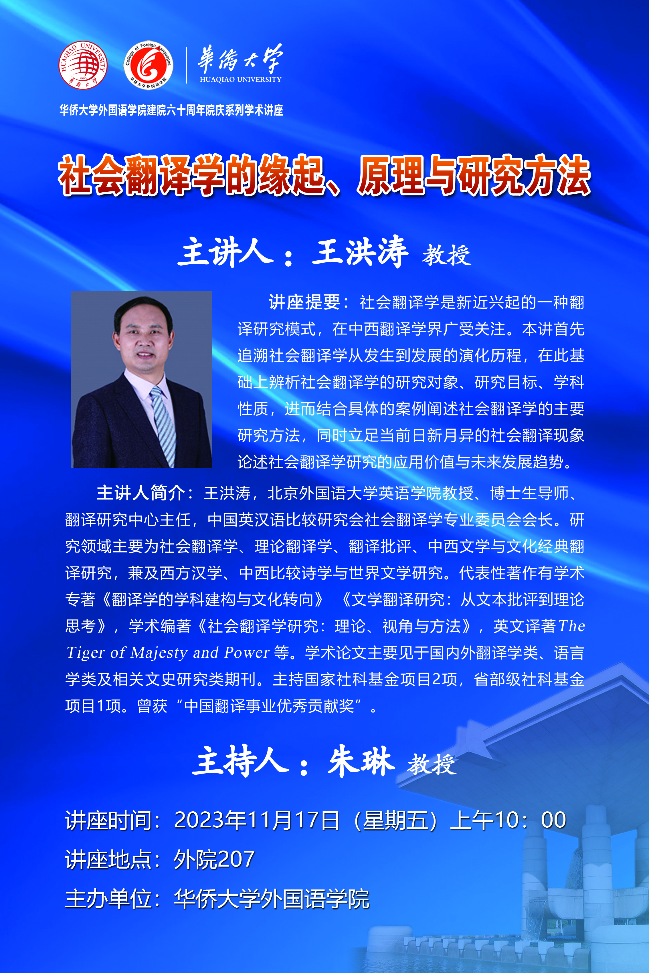 下一条:六十周年院庆系列学术讲座:论译者应树立的“术语意识” (主讲人:季压西 译审)